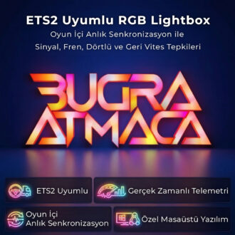 ETS2 uyumlu RGB lightbox tabela. Fren, sinyal ve vites gibi oyun içi aksiyonlara tepki verir. WiFi kontrollü, kişiye özel tasarım.